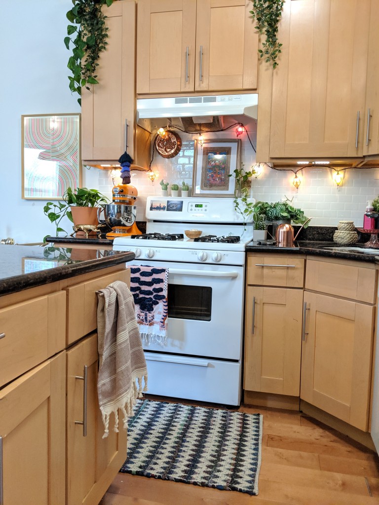5. RUG. Kitchens, in my opinion, are always cuter with a rug! Just be mindful that the kitchen can be a messy place so getting a rug that is dark or patterned to hide spills with help. Bonus points if the rug is outright washable! It also makes it a little more comfortable to stand and make meals!