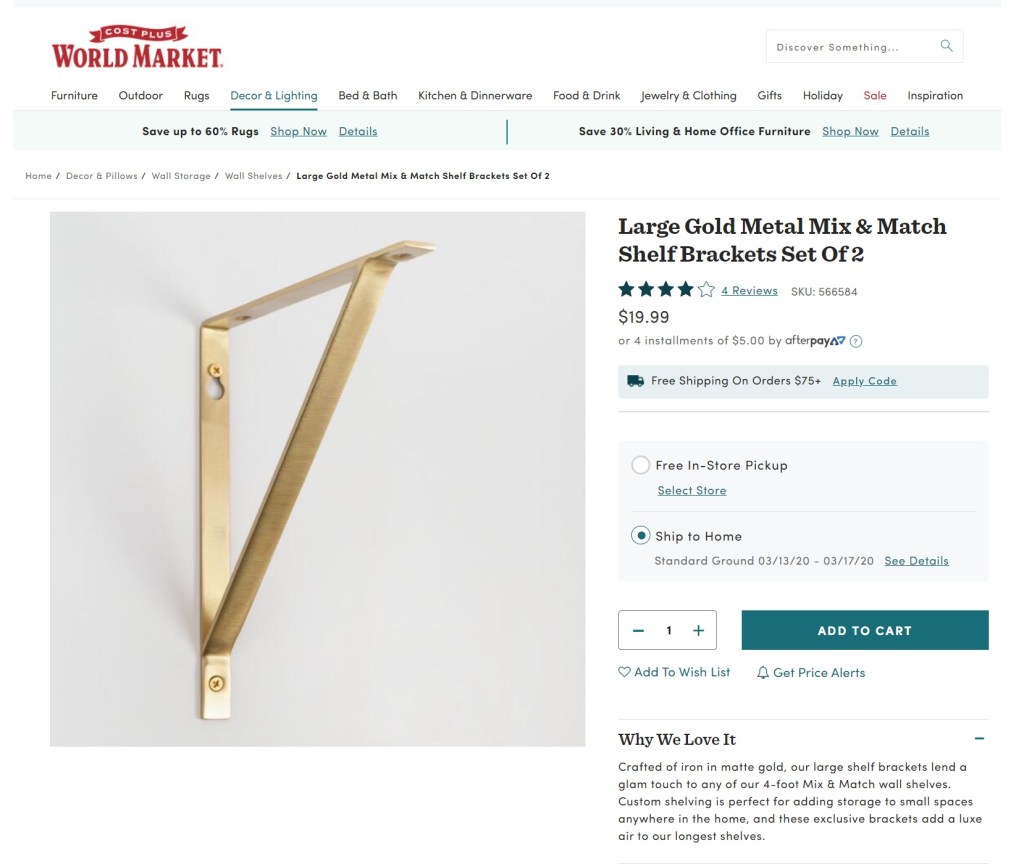 - Brackets – $19.99 (per pair) x 3 [World Market]