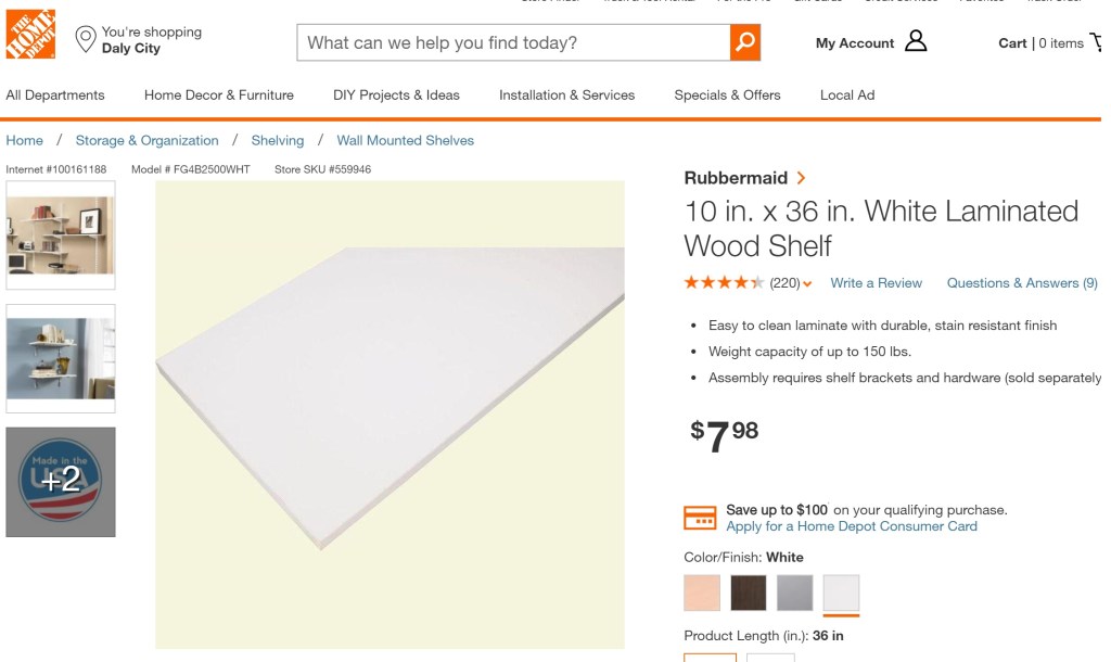 - Shelves – $6.50 (in store price) x 3 [Home Depot]