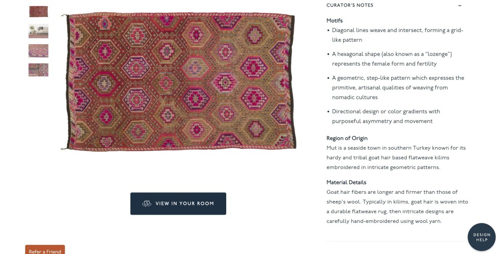 By the way, I love this section on the website where they describe the curator’s notes and tell you a little bit about where the rug is from. These descriptions really endeared me to several of the rugs!