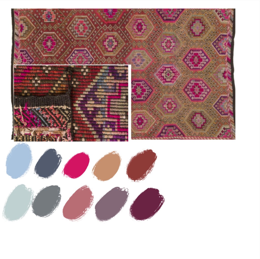 I realized I just wasn’t loving the color plan and it was keeping me from moving forward on any one project. I decided to make a color palette based on the rug that we know we love.