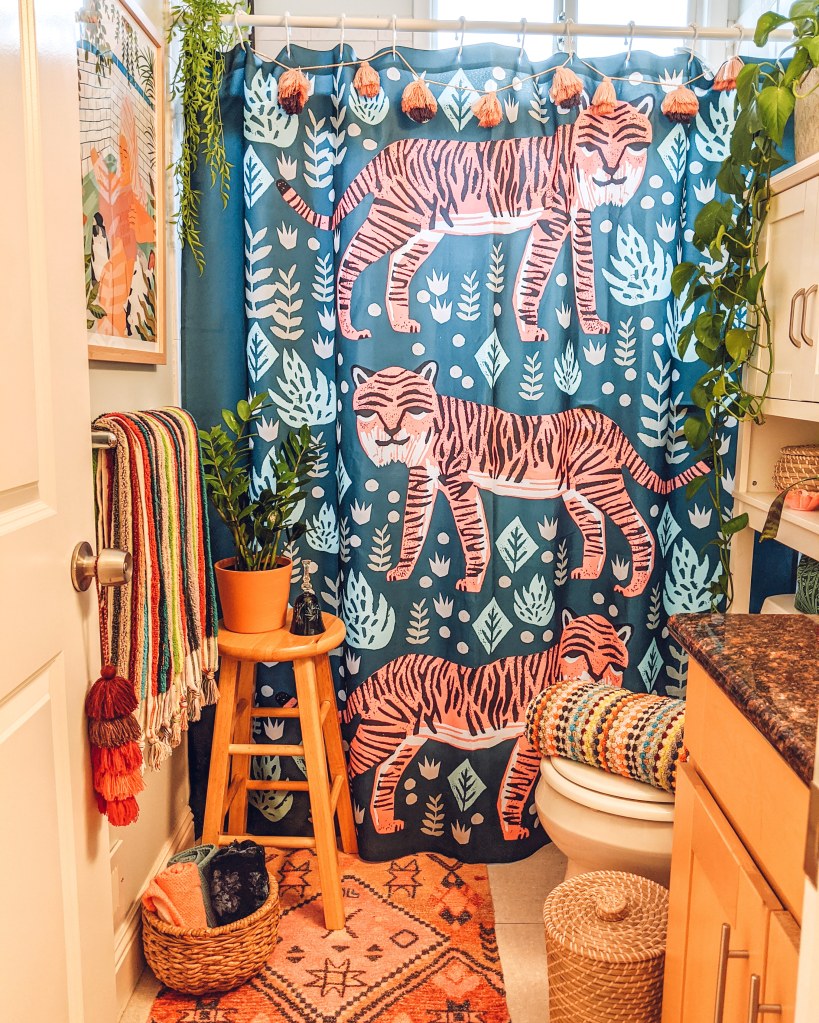 This bathroom gets a lot of love on the ‘gram. We have friends regularly reach out saying that someone they know saw my bathroom on their pinterest. This is always a little shocking for us! Who knew a tiny, rental bathroom could get so much love. One time Drew (my husband) said, “Sometimes it feels weird that hundreds of thousands of people have seen inside my bathroom…” haha! Anyway, TODAY I want to share with you how you can easily have a fun boho bathroom as well, no matter how small or how boring it might be right now.