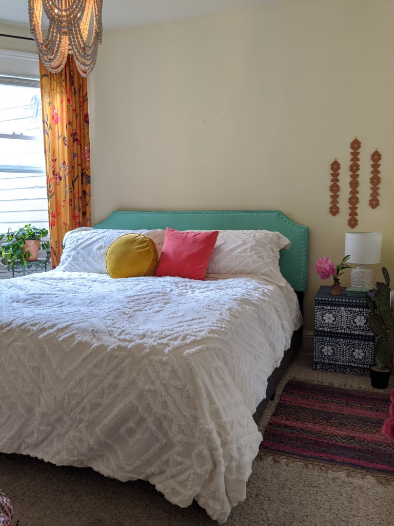 Lastly, I tried out some new bedding to add a little more interest, but I just don’t like it. So I’ll share this little fail with y’all just for fun, but I think I’m going to return it and keep trying for something else.