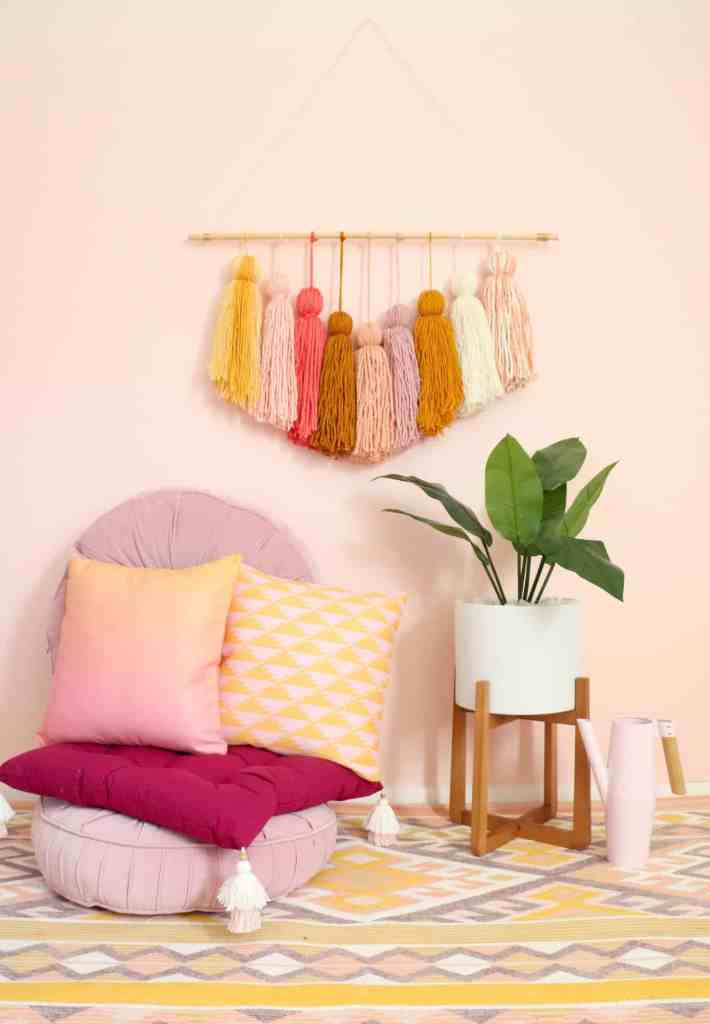 The second thing on the to-do list last week was to come up with what could go above the dresser. There are a lot of options, but so many of them just didn’t feel right for me. I love the idea of a plant accent wall here, but decided due to time constraints, perhaps a yarn wall hanging would be the best solution. I have a lot of left over yarn from other projects, so I am hoping to be able to make something using what I already own. I did purchase a long dowel rod from Michael’s since I didn’t want to try and craft that part. I have no idea how it’ll turn out, but I’ll just be copying the basic design I’ve seen online of different length tassels from a wooden dowel.