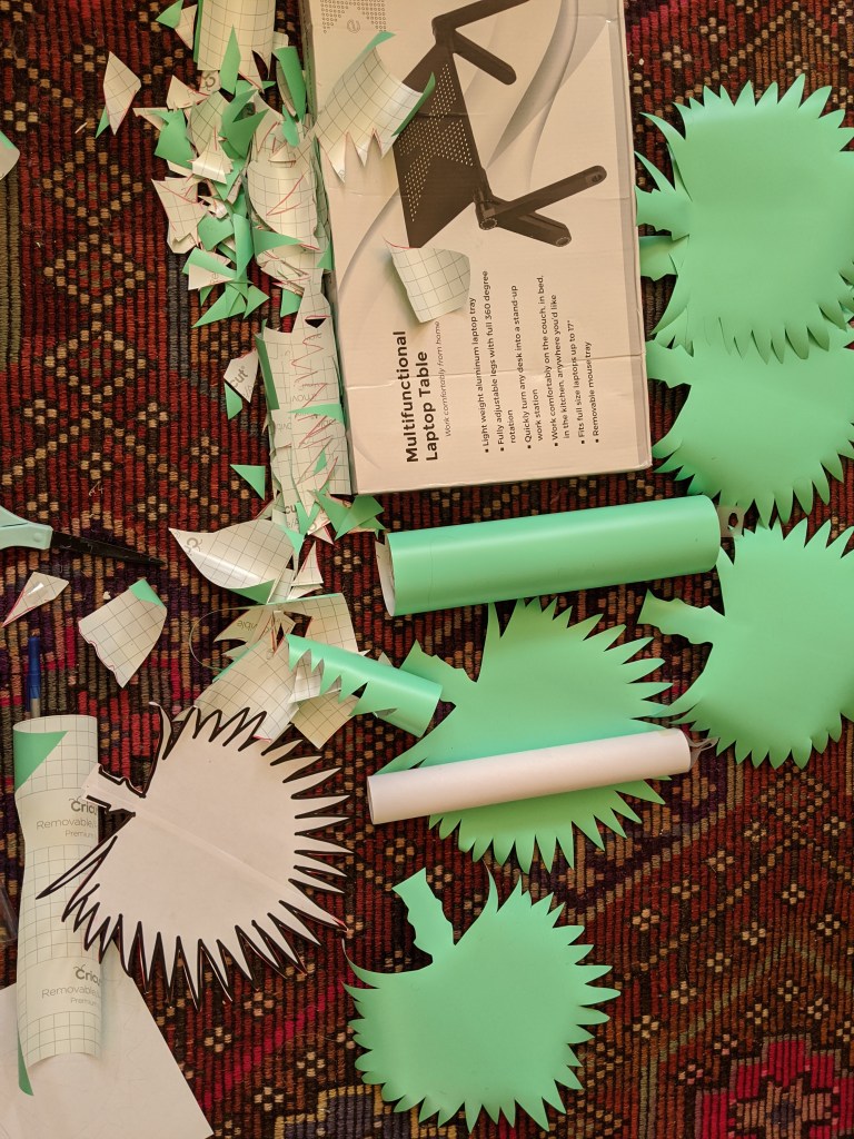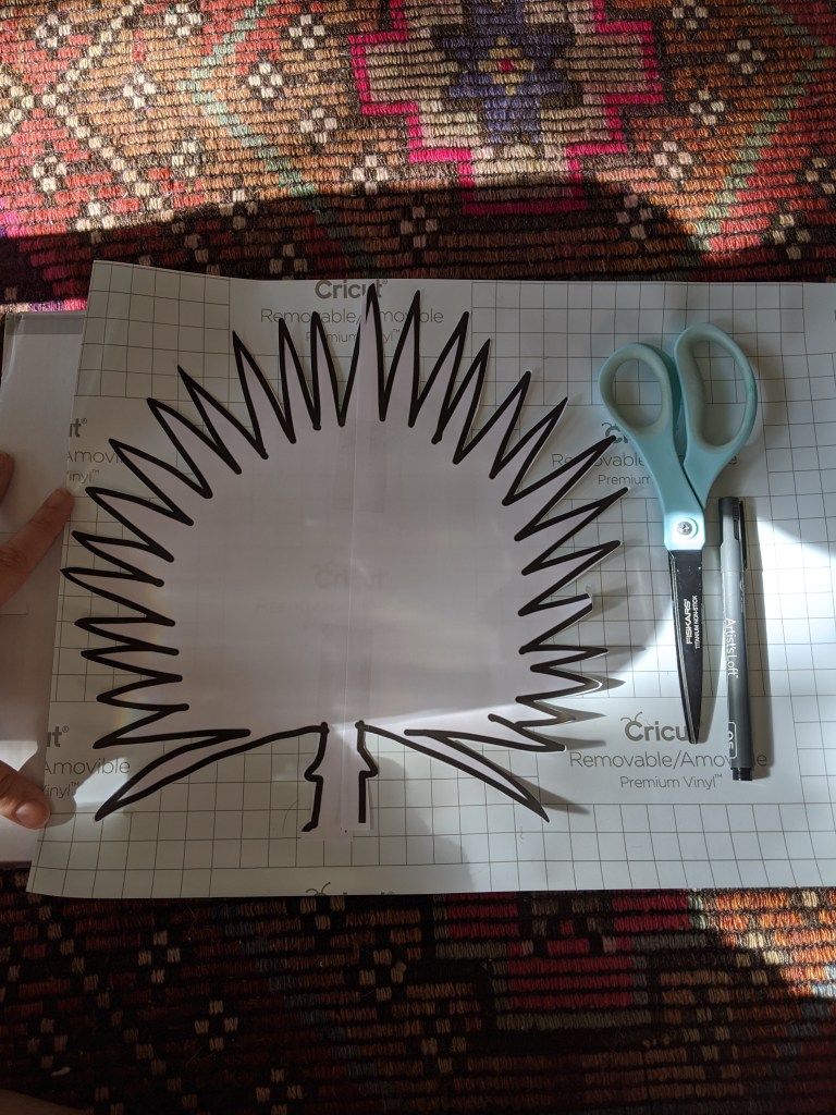 The process was pretty easy. I picked the shape I liked, made a stencil, traced it a bunch of times onto the vinyl and cut them out. These were SUPER easy to work with. It was no big deal to cut them out and stick them up. I even made some mistakes and they came off super easily for repositioning. The packaging says they can be removed without damage for up to two years. (No idea what happens after two years!)