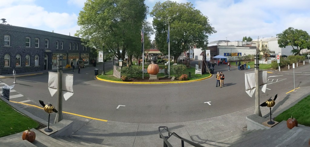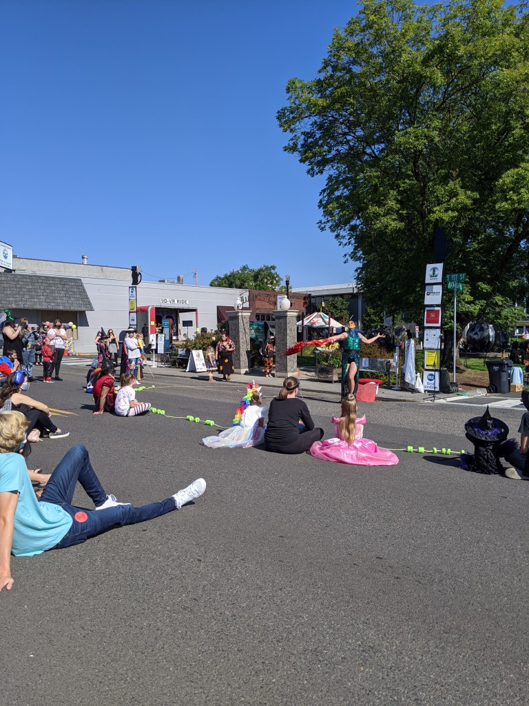 We spent time taking pictures of everything. We went into all of the shops along the street which included some antiques and oddities. We walked around the surrounding area looking for some places where Twilight was filmed. We watched the performances. We shopped the Vendor Village. We went to a brewery that’s in the town square and had a long lunch. We watched the special event. We had dinner nearby on the rooftop.
