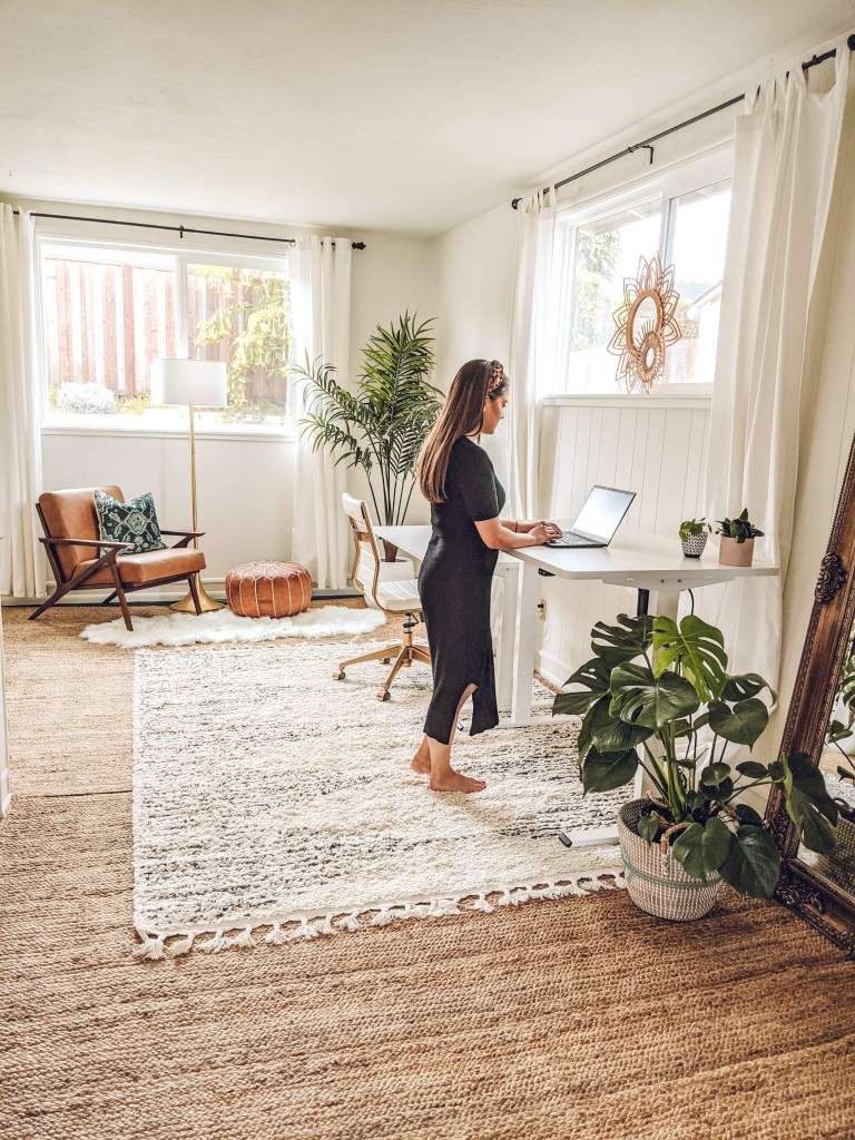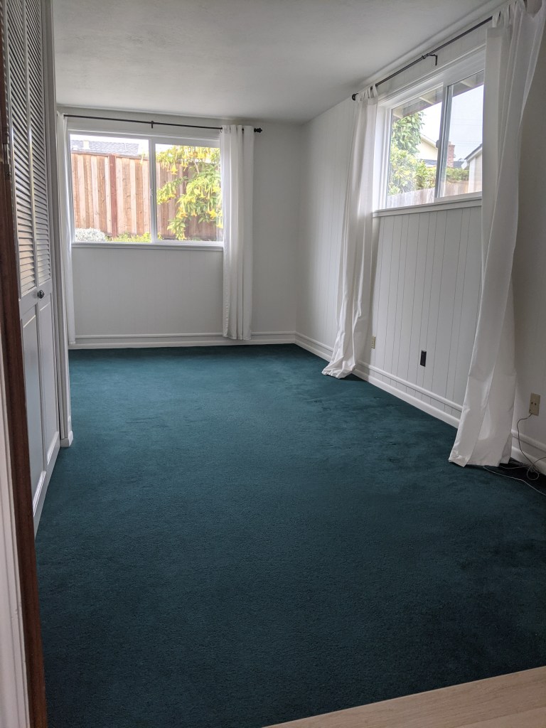 As we all know, this year many folks turned to remote work and needed to get a space where they could work from home. Two of my friends moved into a new place that they’re renting. They needed a work from home space that they both could use, and we started with a super dark and unexciting space. And wait til you see the color of the rug we had to work with! Let me know if you have any questions about this full room makeover of this work from home space!