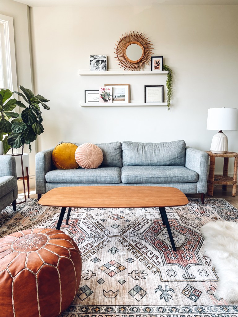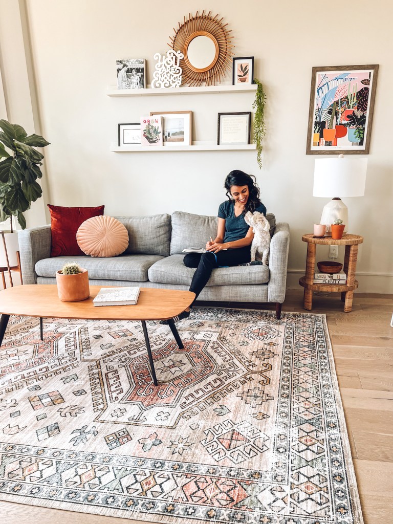 As you may know if you follow me on Instagram I have been doing room makeovers over on my page. I’ve been working with Rugs USA who has majorly come through with bringing life and texture and color to these rooms. I’ve been working with friends while I prototype my process and figure out how to best meet the needs of someone wanting to make over their space. (Check out this link to see the first makeover I did! We took some emerald green flooring to a neutral oasis!!)