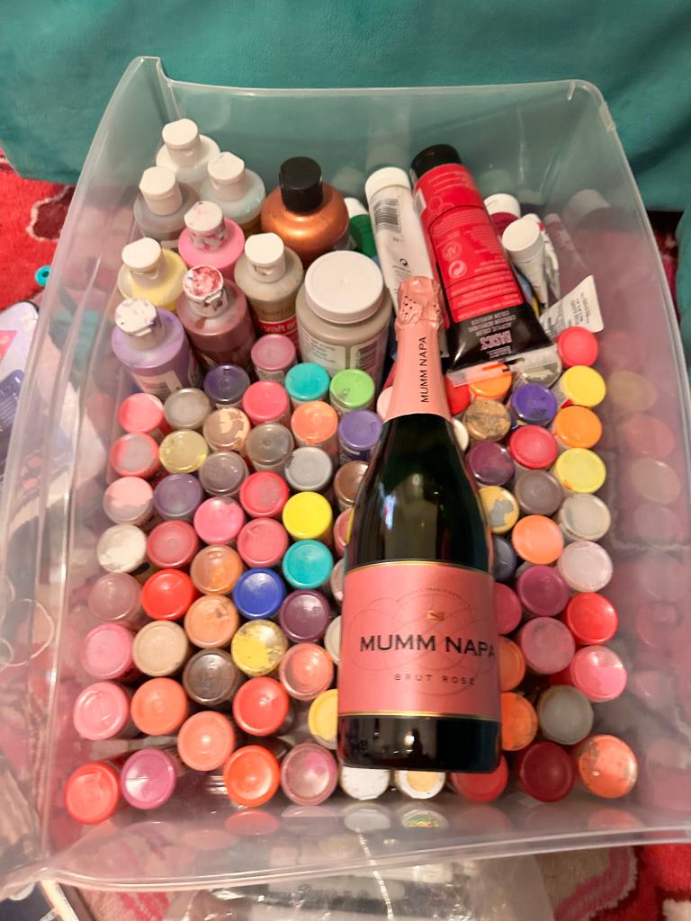 To start, you will need a wine bottle, acrylic paints in pink, white, and green, a paintbrush, and a palette for mixing the paint. You may also want to use painter’s tape to create clean lines or stencils for the daisy design.