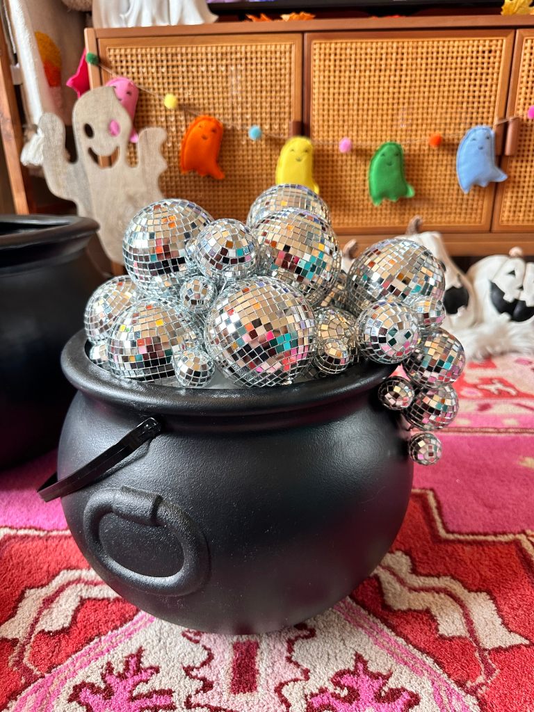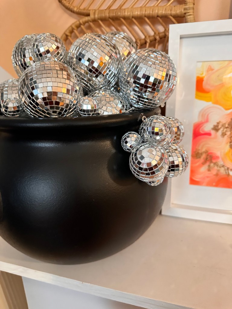 Hey there, Halloween enthusiasts! The spookiest season of the year is just around the corner, and it’s time to brew up some devilishly delightful decorations for your Halloween party or haunted house. Today, we have a spellbinding DIY project that’ll have your guests spellbound – the Disco Ball Cauldron! I saw this trend around instagram and Pinterest and immediately added it to my list of DIY for the season. PS This wasn’t my idea, but I’m not sure who came up with it first, but I saw it the first time on Stephanie Hanna Blog. Thanks for the inspo Stephanie!